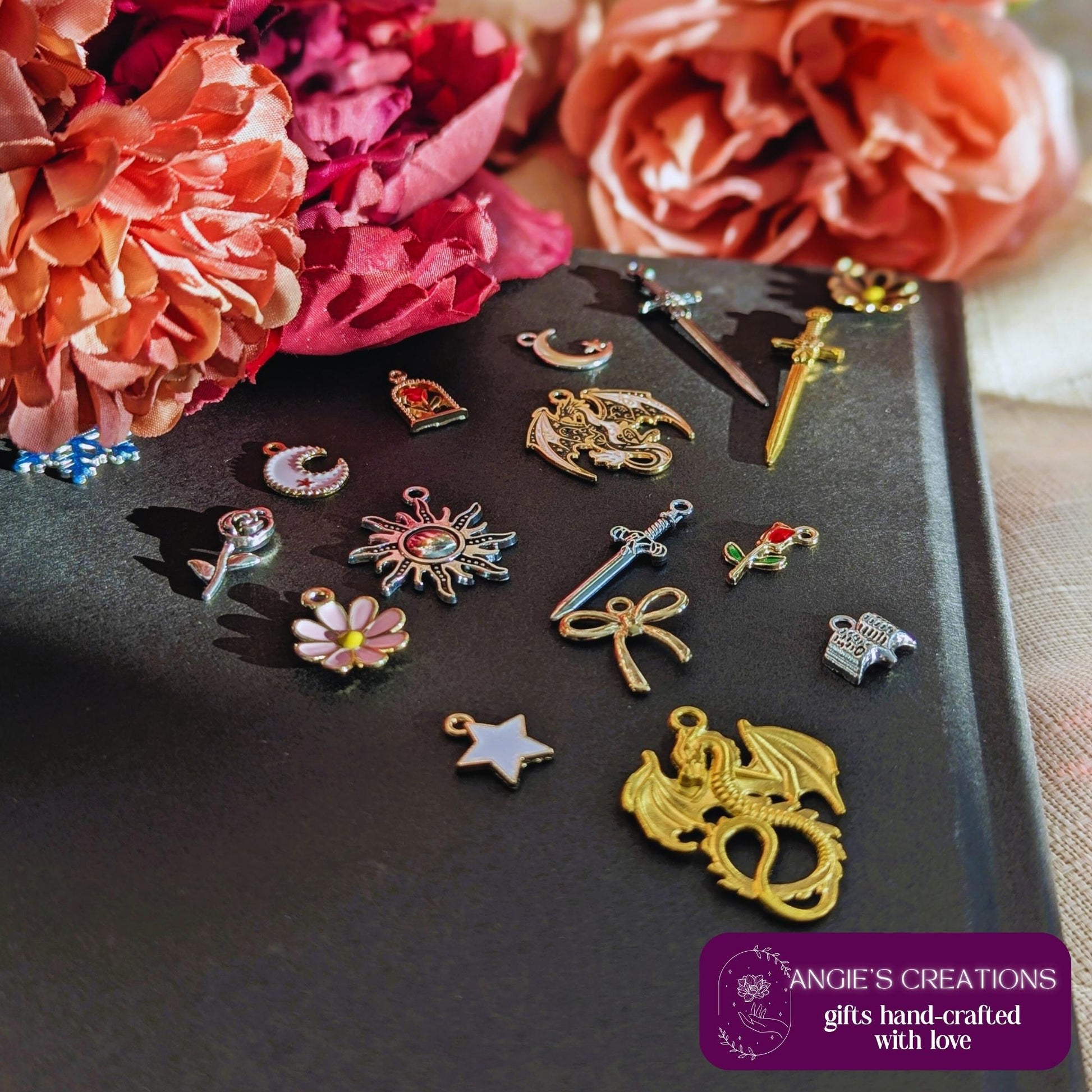 Bring your reading setup to life with this mini dreamy fantasy-inspired charm chain! Each piece is handcrafted in my Ottawa home studio using a mix of detailed enamel charms. Clip it to your Kindle case, planner, tote bag, book sleeve, or key loop for an instant magical vibe.