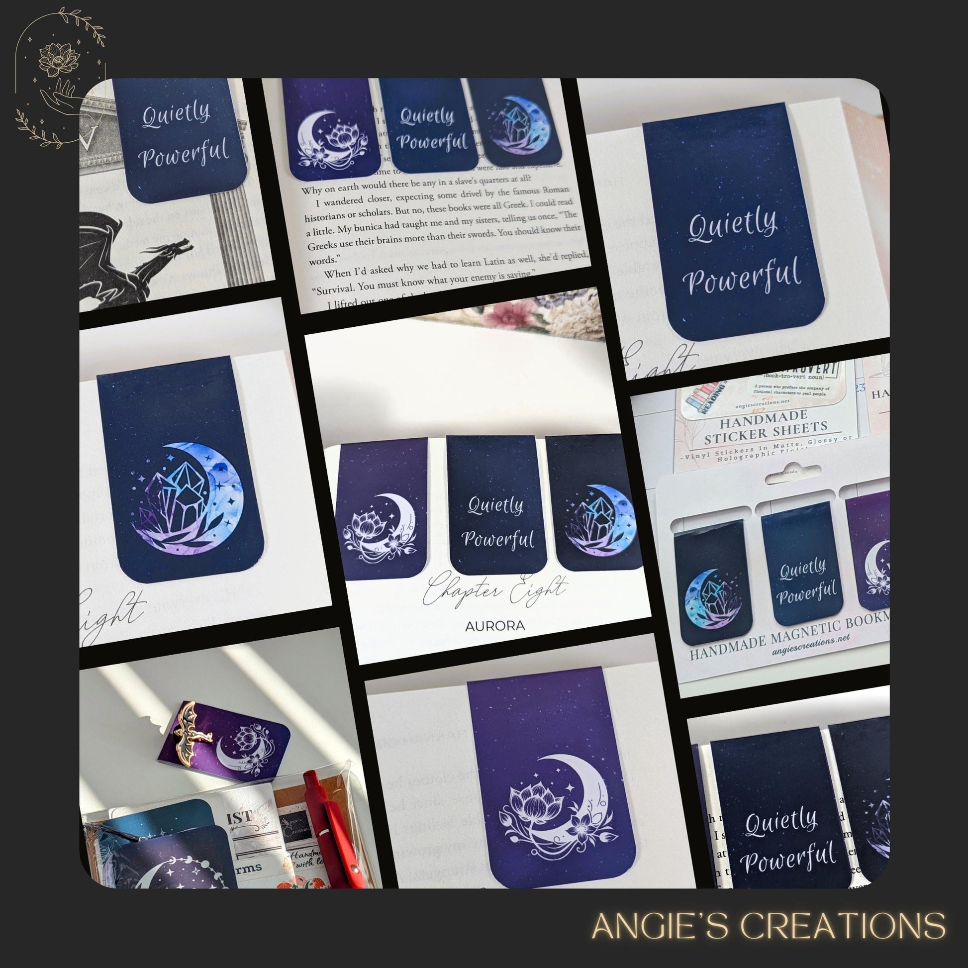 A soft celestial magnetic bookmark tab with locus floral moon design. Perfect for cozy readers, romantasy fans, and pretty tabs for your dream diary, journal, or planner. These magnetic bookmark tabs are thin enough not to bulk up your pages yet strong enough to hold securely. Each one is printed with a unique design on the front and back, adding a touch of charm to every read, planner, or journal.