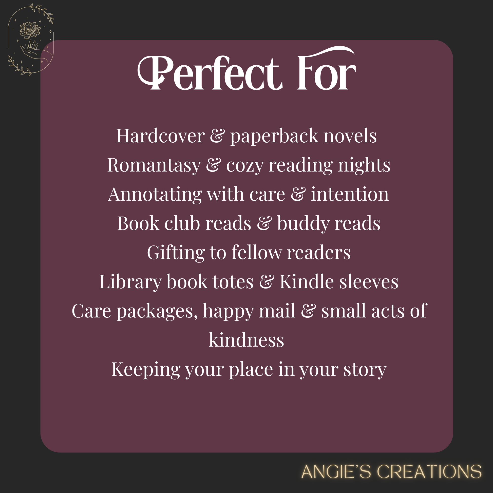 Each bookmark is handmade in my home studio in Ottawa with care and intention. Designed to feel soft, meaningful, and personal; something you’ll reach for every time you sit down to read.